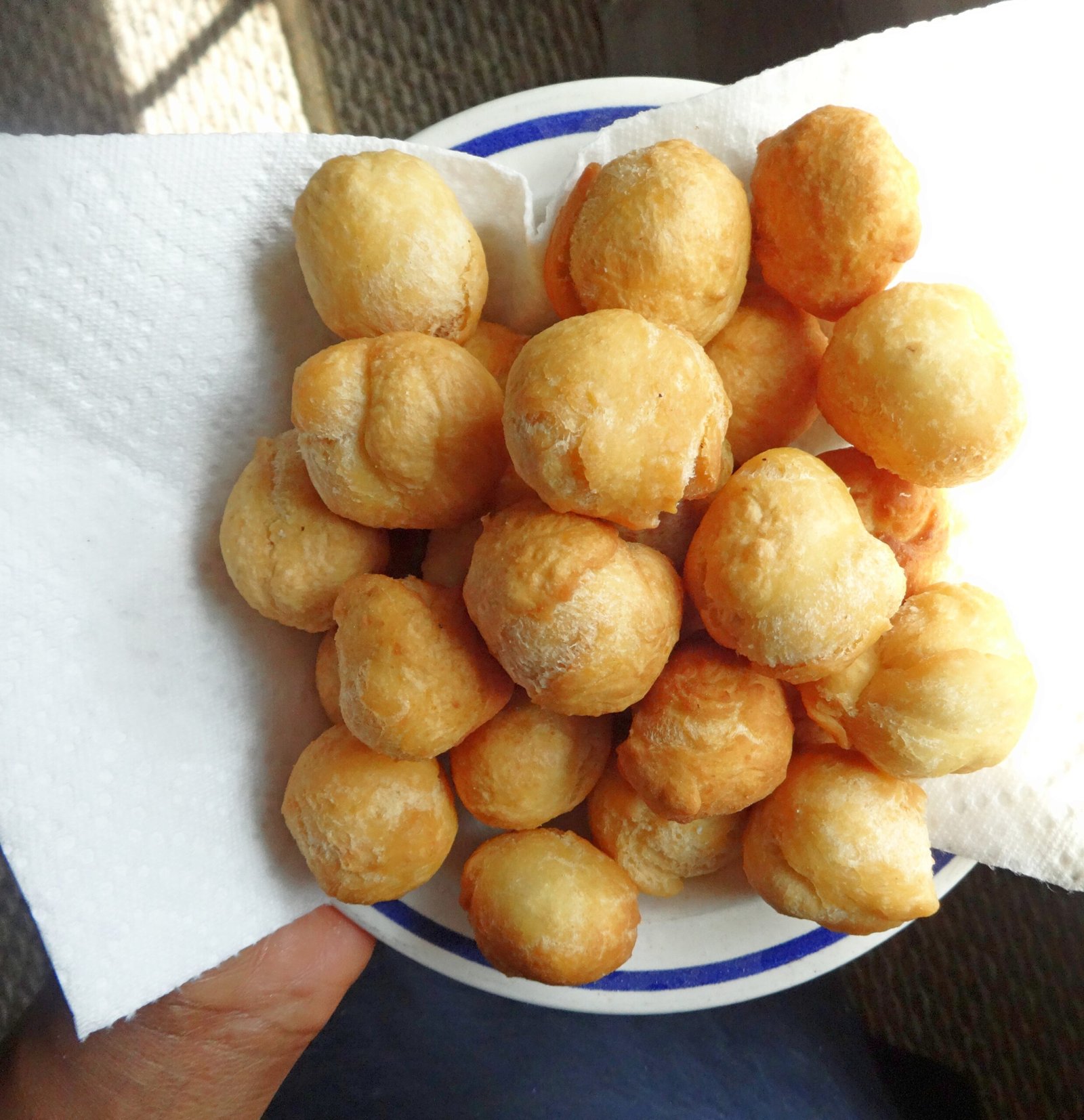 - Heat oil in a skillet, for about 2 minutes, over medium heat. Cut the dough into small pieces. Use your hands to roll each piece into small circles. Drop pieces in hot oil and let the dumplings fry until they are golden in color, about 5 minutes. Use a slotted spoon or fork to remove the dumplings from oil. Place on a paper towel lined plate.